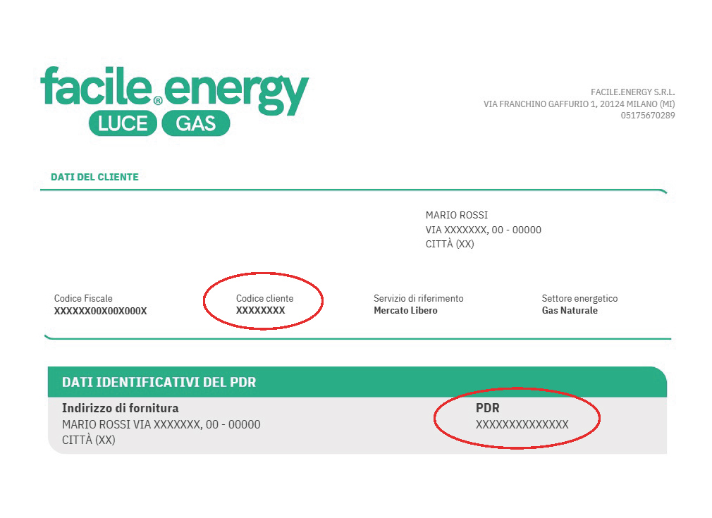 Compila il form inserendo: il tuo codice cliente (lo trovi nella prima pagina della bolletta, come vedi nell’immagine esemplificativa), il PDR (nella seconda pagina della bolletta), e la lettura del contatore (ovvero i numeri neri che trovi direttamente sul tuo contatore). Infine aggiungi la data cui hai effettuato la lettura.